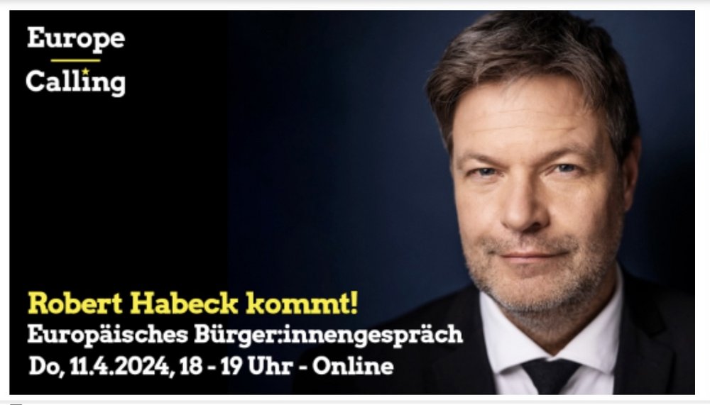 Am Donnerstag, den 11. April von 18-19 Uhr kommt der deutsche Vizekanzler und Bundesminister für Wirtschaft und Klimaschutz zu Europe Calling, um in einem Bürger*innengespräch über das große Thema “Wie gelingt die Transformation in Europa?” zu sprechen.