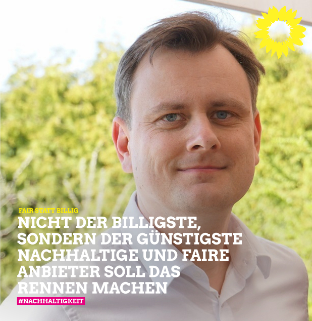 „Uns ist es ein moralisches Anliegen, dass bei einer Ausschreibung nicht der Billigste das Rennen macht, sondern der günstigste nachhaltige und faire Anbieter. Bei der Gewichtung muss unter anderem die Höhe des Lohns entsprechend stärker gewichtet werden. Als wir unseren Antrag stellten, galten in den alten und neuen Bundesländern beispielsweise unterschiedliche Tarife in der Gebäudereinigung. Für ein regionales Unternehmen möglicherweise der eine Punkt eine Ausschreibung zu verlieren. Bis vor Kurzem wollte die Lufthansa noch das Bordcatering in Tschechien kochen lassen. Ein sozialer und ökologischer Irrweg.“, so der Winser GRÜNE.