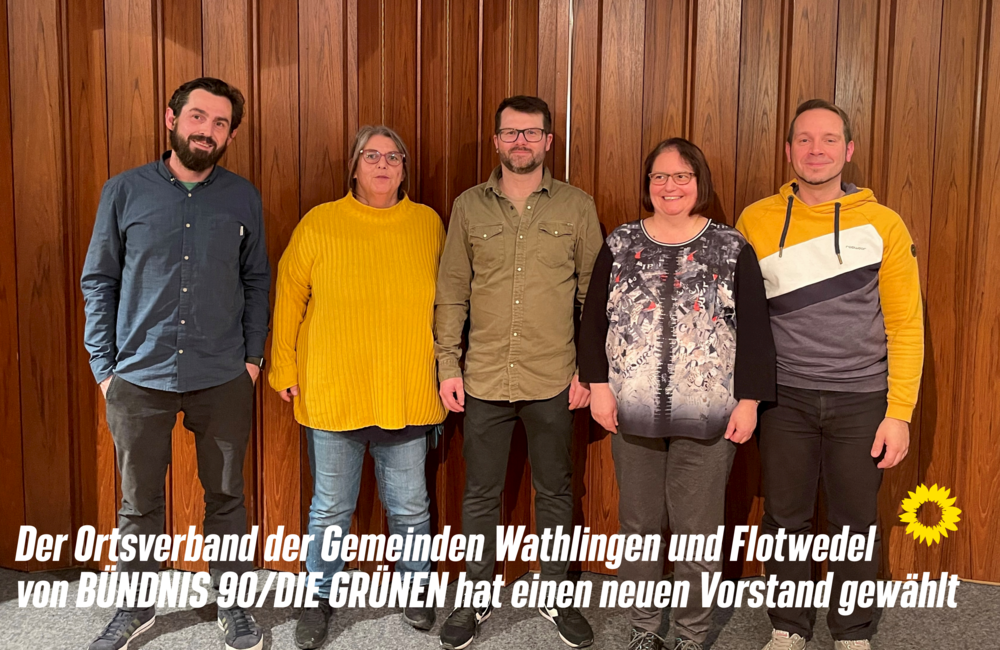 Der Ortsverband der Gemeinden Wathlingen und Flotwedel von BÜNDNIS 90/DIE GRÜNEN hat sich neu aufgestellt. Am 25.11.2022 wurden Jan Tasarek (Polizist, 42) und Marcel Kasimir (Lehrer, 43) einstimmig zu den Vorstandsvorsitzenden gewählt.