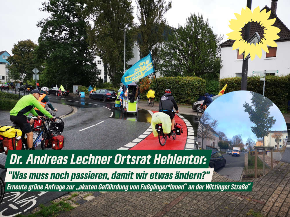 Die fehlende Verkehrssicherheit auf Gehweg und Straße zwischen Dörnbergstraße und Berkefeldweg ist ein altbekanntes Thema im Ortsrat Hehlentor. Zwei Wochen nach der erneuten grünen Anfrage zur „akuten Gefährdung von Fußgänger*innen“ an der Wittinger Straße“ passiert am Mittwochvormittag der nächste Unfall. Das Unfallopfer ist verletzt und musste ärztlich untersucht und behandelt werden.
