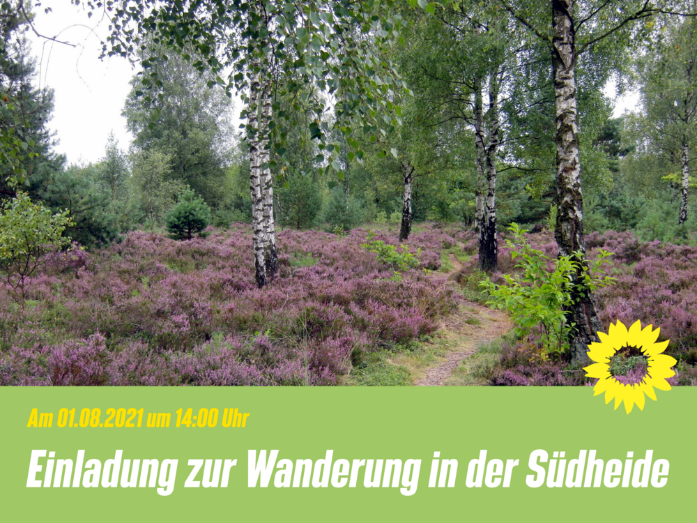 Die Grünen der Südheide laden Sie dazu am 1. August um 14.00 Uhr nach Hermannsburg ein. Treffpunkt ist der Parkplatz an der Misselhorner Heide an der K17 ca. 1 km hinter dem Gasthaus „Misselhorner Hof“.