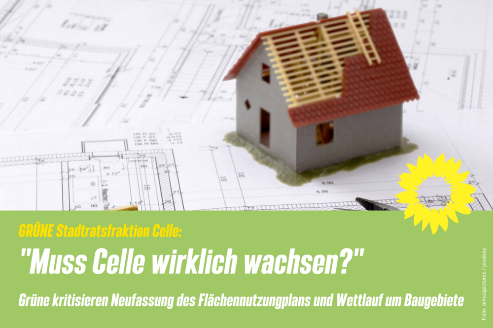 „Celle muss wachsen, wachsen, wachsen!“ Auf diese kurze Devise lässt sich bringen, was die Stadtverwaltung jetzt in einer öffentlichen Online-Veranstaltung zur Neufassung des Flächennutzungsplanes verkündete. Die grüne Stadtratsfraktion sieht diesen Ansatz kritisch. "Es kann doch nicht sein, dass alle Kommunen in einen für die Natur mörderischen Wettbewerb eintreten nach der Devise: Wer hat die meisten Baugebiete?“ so das grüne Bauausschuss-Mitglied Karin Abenhausen. „Das ist völlig rückwärts gewandte Politik aus dem letzten Jahrhundert.“