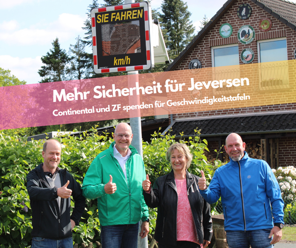 "Wir freuen uns, dass wir nicht nur mit der Entwicklung und Erprobung von Technologien unserer Unternehmen für die Mobilität von Morgen die Straßen sicherer machen, sondern auch in der Gemeinde zu mehr Verkehrssicherheit beitragen können", so Henning Kutzner, Leiter ZF Teststrecke und Wolfgang Rötter, Standortleiter Contidrom Jeversen.