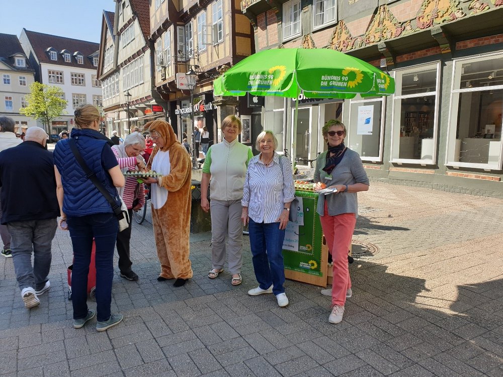 Am Ostersamstag haben sich wieder etliche Grüne in der Stadt versammelt, um gefärbte Bio-Eier zu verschenken.