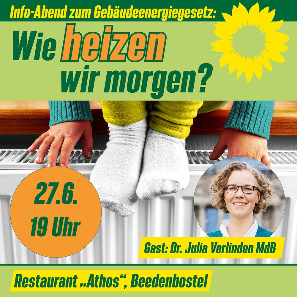 Was nun die konkreten Pläne für die Wärmewende sind und wie der Umstieg sozial gerecht gestaltet wird, darüber berichtet Julia Verlinden und diskutiert mit dem Publikum.